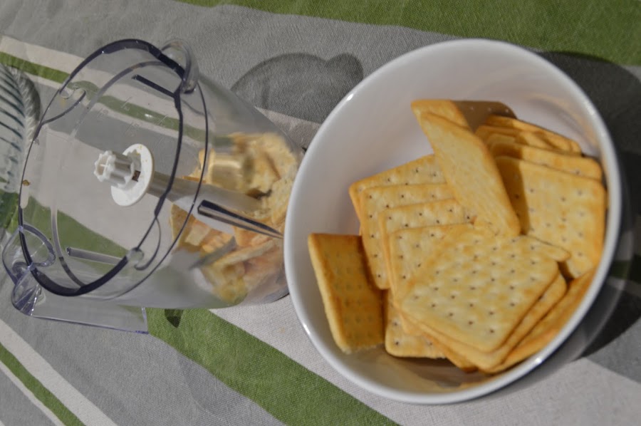 - Echamos la mitad de las galletas en la trituradora, hasta convertirlas en un fino polvo.