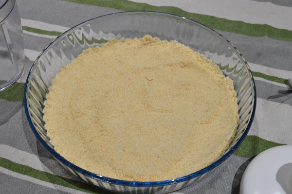 - Extendemos las polvo de galleta en el recipiente que vayamos a meter al horno.