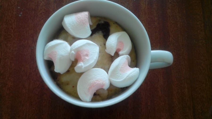 Espero que lo prepares y ya verás que no te arrepentiras, desde el primer bocado podrás sentir lo tibio y esponjoso del bizcocho juntp con trocitos de chocolate derretido y los marshmallows también dulces y derretidos que coronan este Mug Cake.