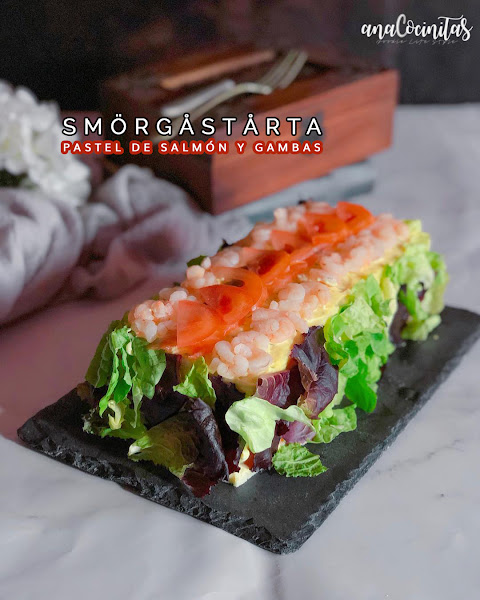 Hoy os traigo mi versión del Smörgåstårta, un pastel frío de salmón y gambas sueco. Una receta muy rica y llamativa, que aunque es entretenida de preparar esta muy rica y es ideal como receta de verano porque es fresquita y se puede dejar lista el día anterior.
