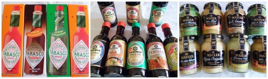 No falta de nada, desde todo tipo de mostazas Maille, a diferentes clases de salsas de soja Kikkoman y cuatro variedades de salsa Tabasco. A partir de ahora los veréis a menudo en mi cocina e iremos aprendido como utilizarlos y en qué recetas incluirlos.