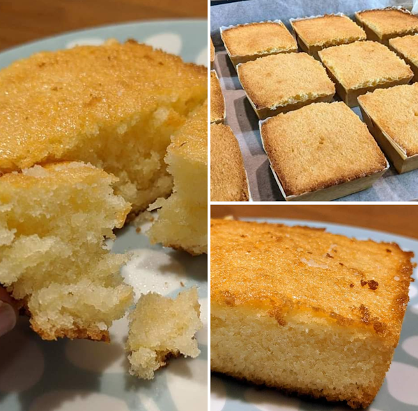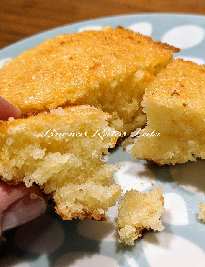 La masa crece en el horno sin necesidad de polvos de hornear. El resultado me encanta, es diferente a los sobaos que se venden en las pastelerías de Cantabria que, por supuesto, son deliciosos.