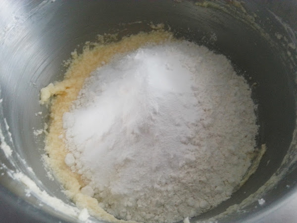 3. - Le añadimos la harina pasada por un colador o tamiz junto con la levadura y mezclamos bien.