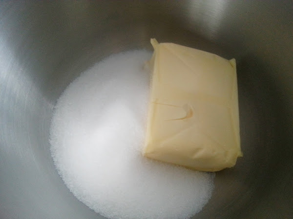1. - Encendemos el horno a 180º y ponemos en la batidora la mantequilla, que esté blanda, que la temperatura ambiente de estos días....como que sigue igual de dura... y lo batimos bien con las varillas.
