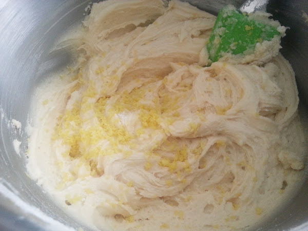 4. - Y por último le añadimos la ralladura del limón y la pizca de sal (una pizca es lo que cojáis con la punta de los dedos) y volvemos a mezclar.
