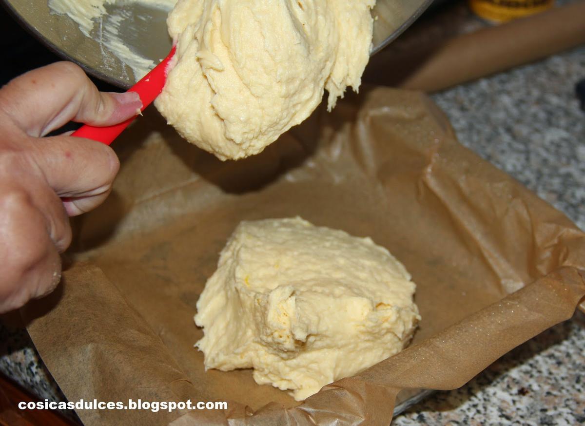 Seguidamente añadimos la harina tamizada junto a la levadura, la mantequilla reblandecida y la ralladura de limón. Si utilizamos un robot de cocina que disponga de pala mezcladora este es el momento de ponerla. Si no lo tenemos podemos seguir mezclando con la varilla pero a velocidad muy baja.