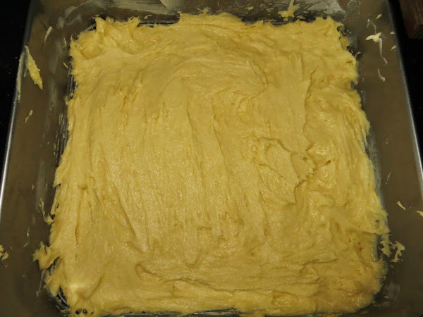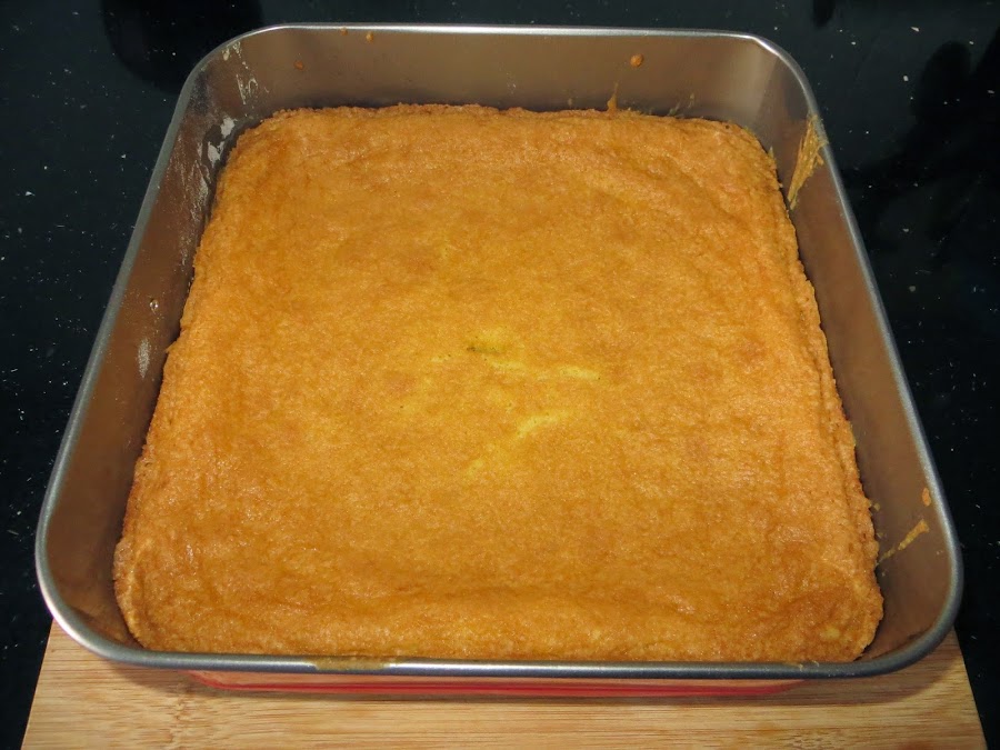 Untamos un molde cuadrado con mantequilla y espolvoreamos harina para que no se nos pegue la mezcla. A continuación, vertemos la masa. Horneamos a 180º durante 25 minutos. Dejamos enfriar, lo cortamos en cuadrados y ya están listos para comer.