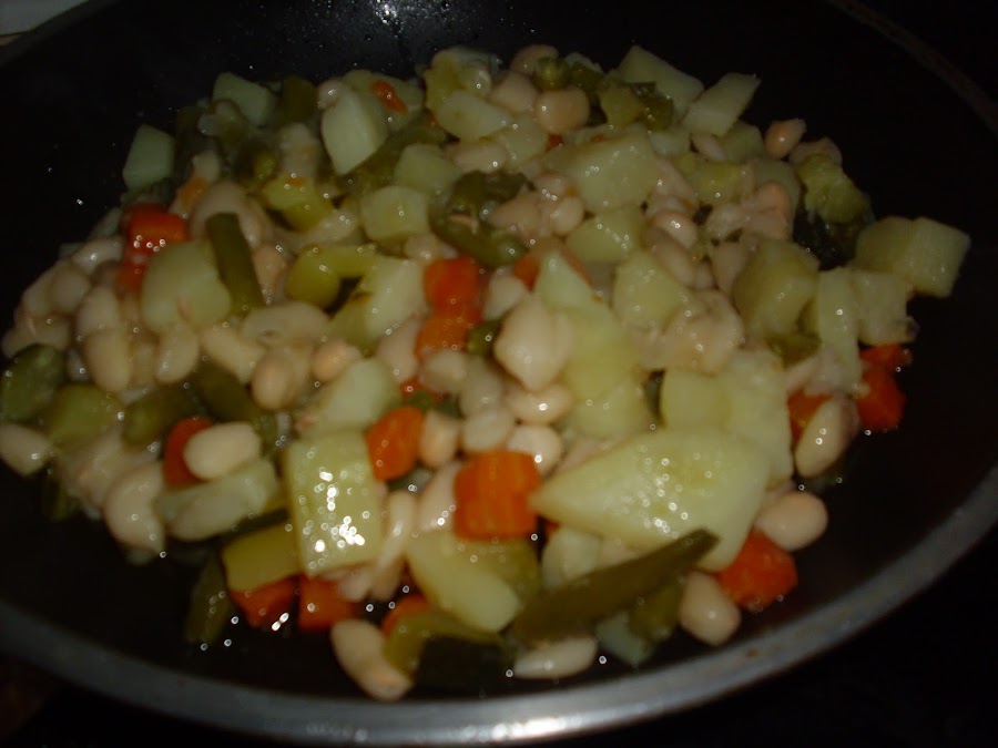 he salteado los vegetales en cuadritos y cocidos