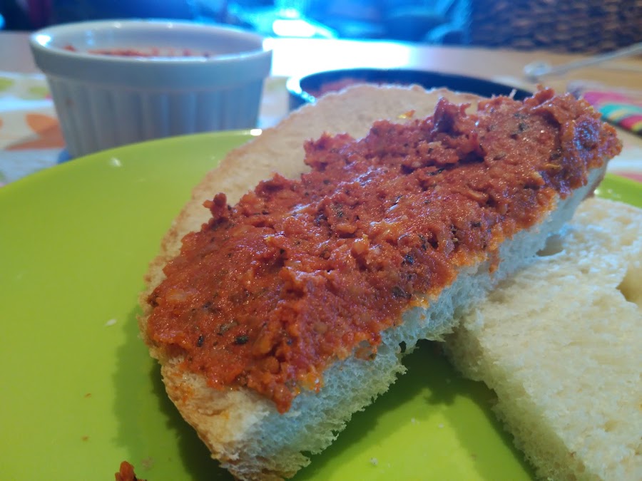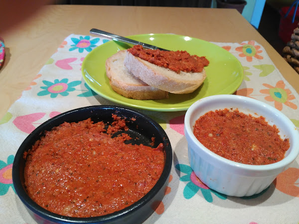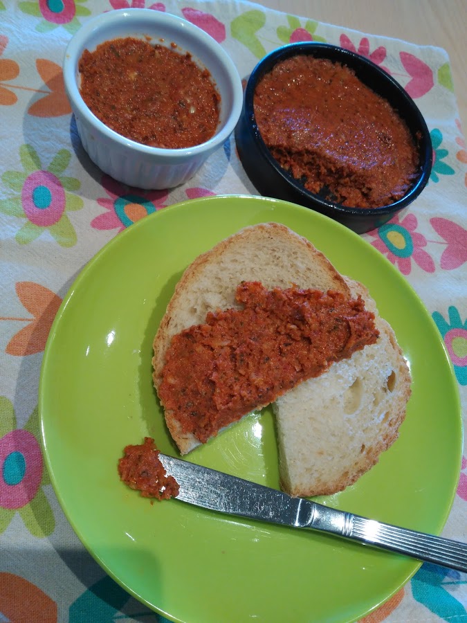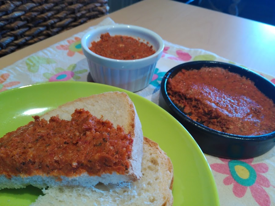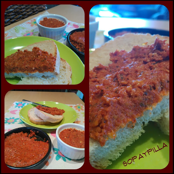 Hace ya días que mi amiga Chelo me pasó una foto de una sobrasada que acababa de comprar, -está buenísima, me decía...-esto lo tienes que hacer tú para el blog. Me fijé bien en los ingredientes y empecé a hacer pruebas...Bufff cuando la probé casi me caigo de espaldas!! que riquísima está...mucho más buena que la de carne. No sé si se parece a la de bote que encontramos en el super, porqué no la he probado nunca, pero desde luego os aseguro que está deliciosa...y sin hacer daño a ningún animal!! ole ole!!