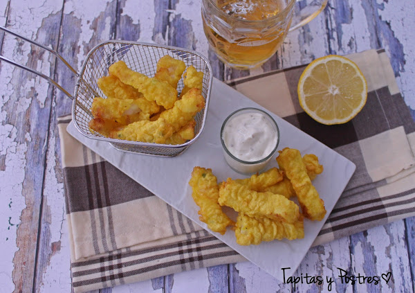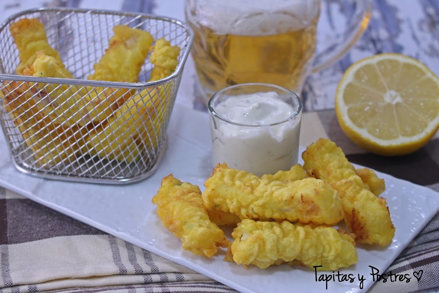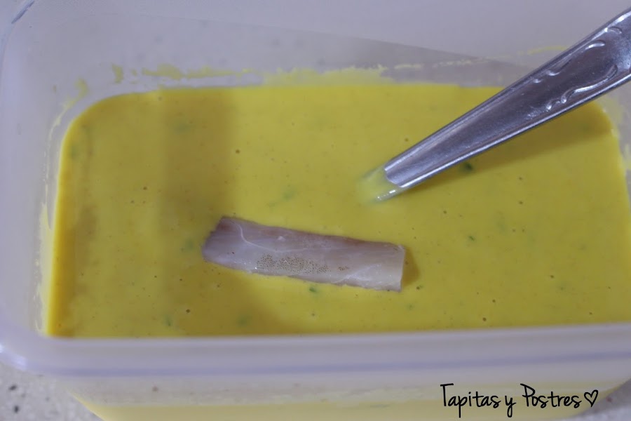 Bañamos los palitos de bacalao en la masa y los freímos en una sartén con abundante aceite caliente hasta que estén dorados. Yo los hago en freidora, me gusta más para este tipo de frituras.