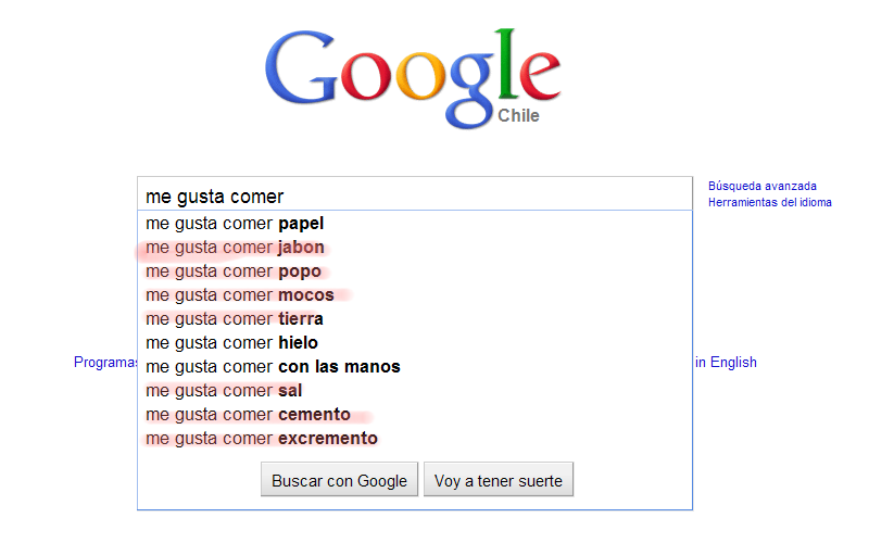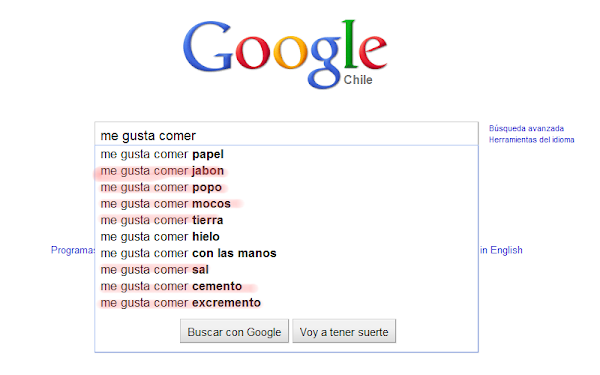 La clave para acceder a todo ese conocimiento son los buscadores. Y las búsquedas que nosotros hagamos, y es que en internet se puede buscar de todo...Ya sabéis que al escribir en la barra de Google lo que quieres buscar, el propio buscador te ofrece opciones que otros usuarios han consultado... Pues mirad qué cosas tan raritas busca la gente:
