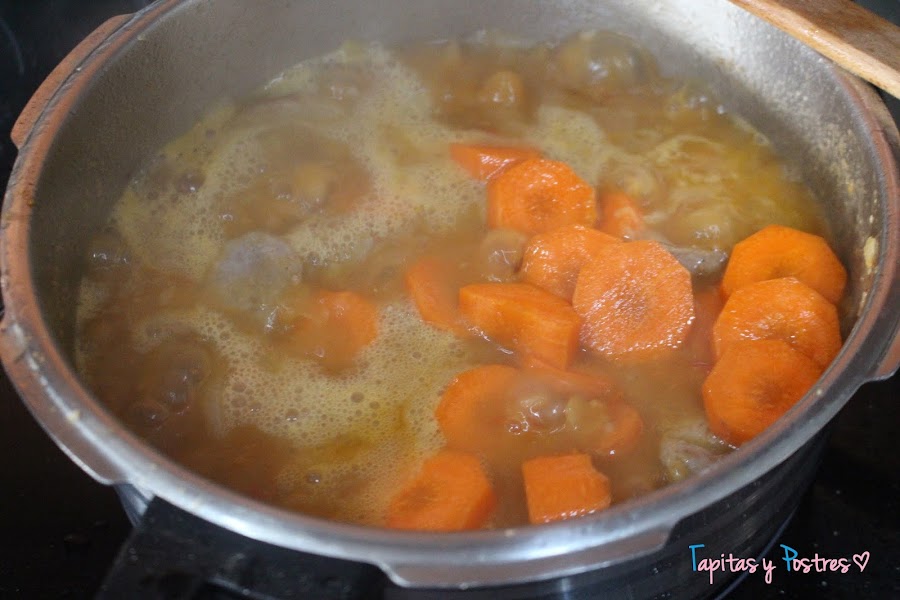 Para cocinarlo he usado la olla rápida, se tarda apenas 12 minutos desde que la vávula de la olla sube indicándonos que ha alcanzado la temperatura.