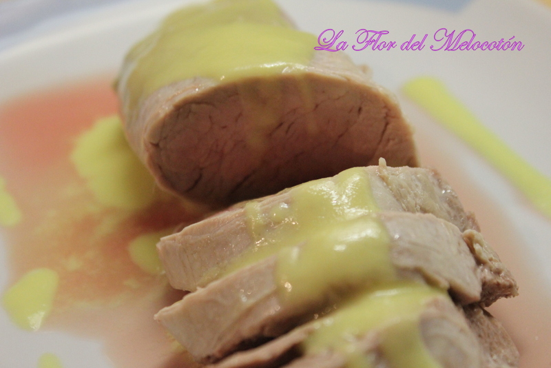 Una vez cortado a rodajas el solomillo, le echamos por encima un poco de salsa y el resto lo ponemos en una salsera.