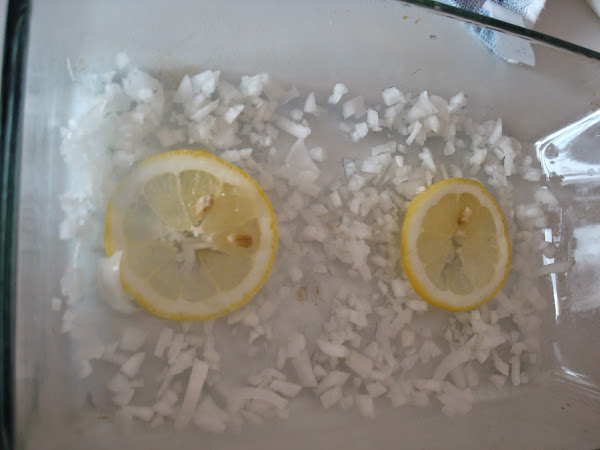 En primer lugar picamos en cebollino y 2 rodajas de limón y lo ponemos en una bandeja.
