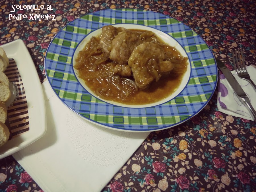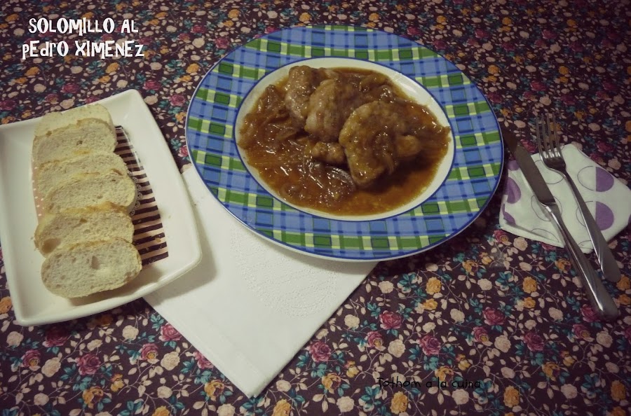La receta que os traigo hoy, le tenía ganas hace tiempo, aunque la preparé por primera vez hace poco. El archiconocido "Solomillo al Pedro Ximenez". Riquísimo como me imaginaba y mucho pan para esa salsita deliciosa.