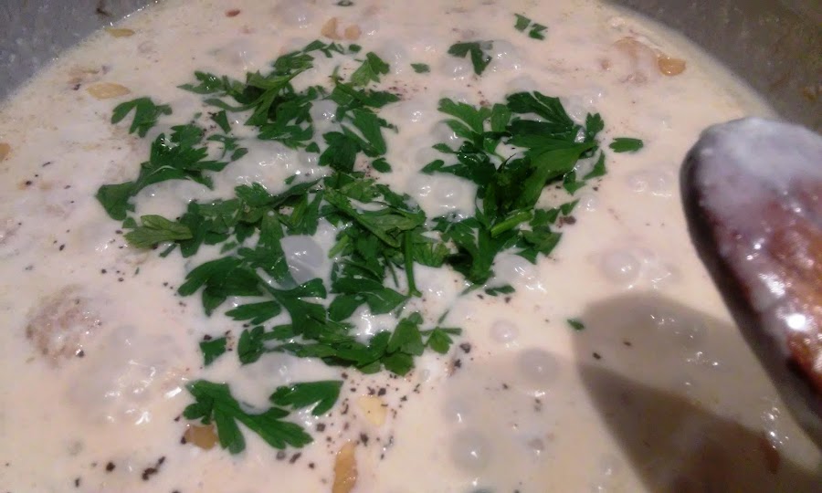 Pon sal, pimienta y el perejil picado. Deja cocer 2 minutos a fuego medio-bajo.