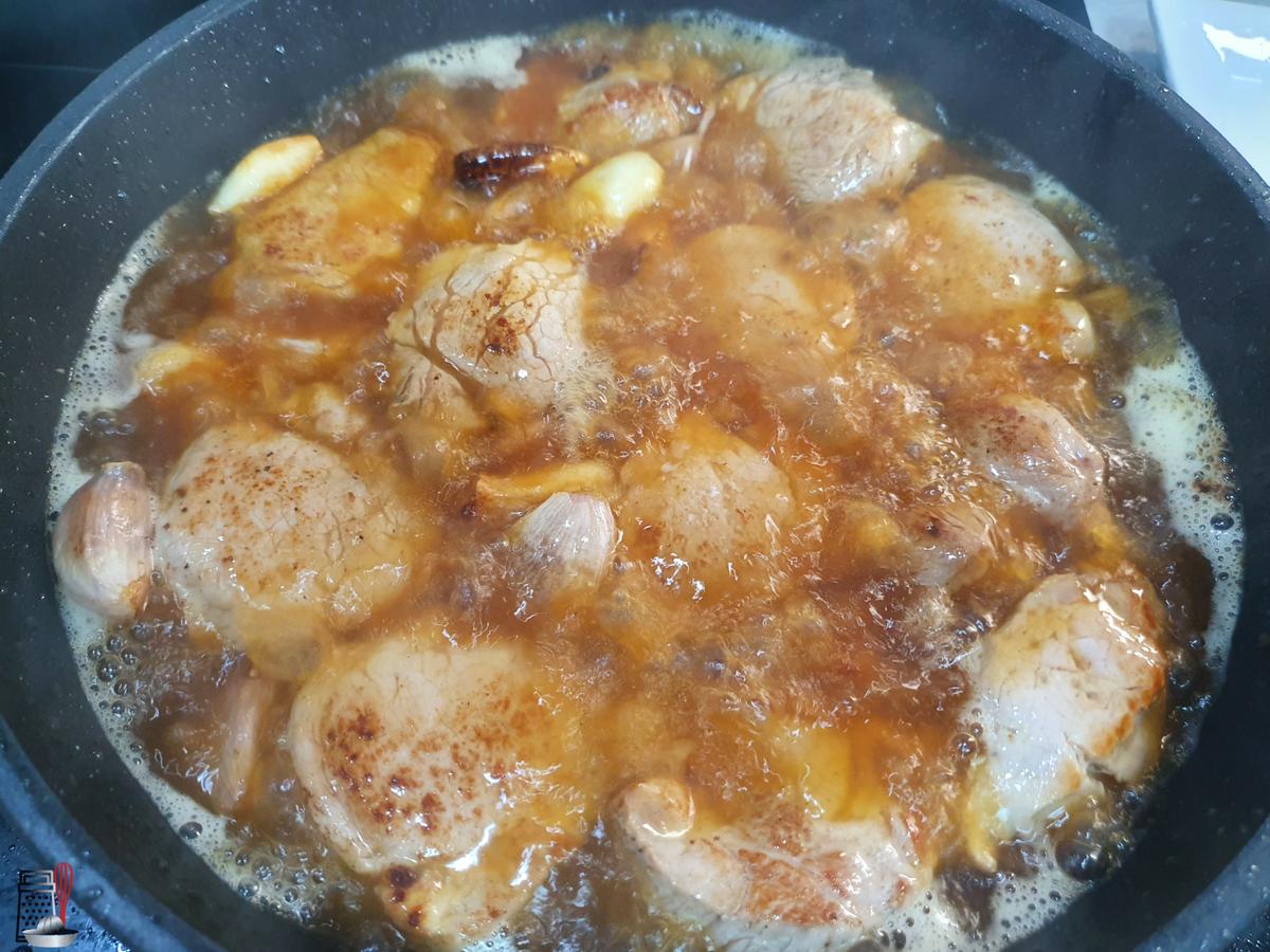 Añadimos la maizena, tapamos, bajamos el fuego y dejamos reducir la salsita y que se terminen de hacer los medallones. No hay que hacerlos demasiado porque si no se queda seca la carne. Hay que hacerla solo un par de minutos.