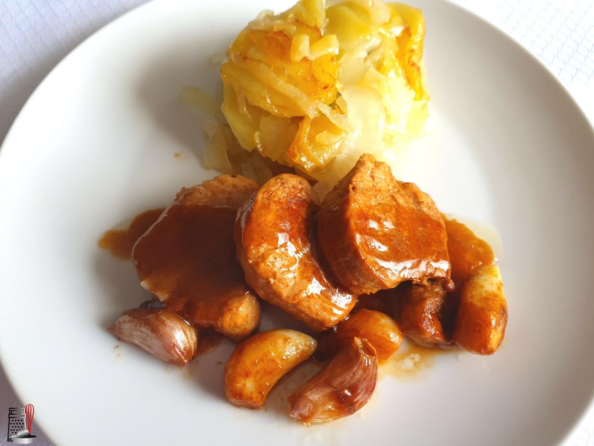 Servimos el solomillo recién hecho con las patatas y un poco de salsa.
