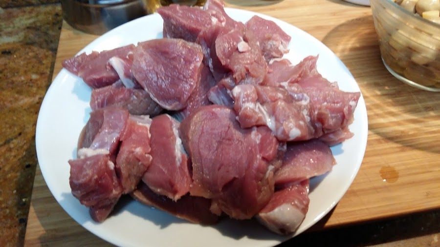 Empezamos cortando el solomillo en rodajas de 1 dedo o poco más y lo salpimentamos