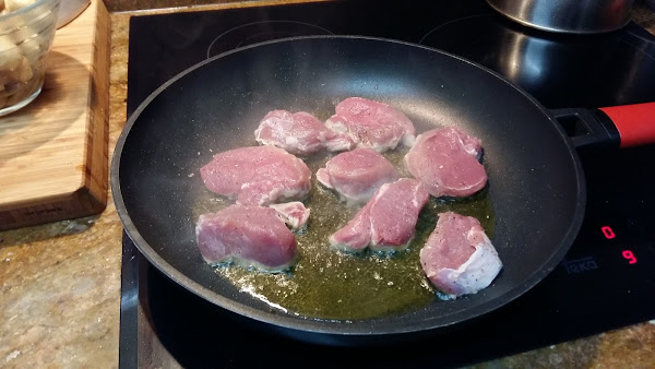 Ponemos una sarten al fuego con un chorrito de aceite de oliva y sellamos el solomillo .