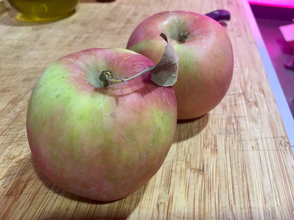 1. Precalentamos el horno a 180ºC. Lavamos las manzanas y las partimos en tres trozos, teniendo en cuenta que sólo aprovecharemos el trozo central, que debe ser de un dedo de grosor. Colocamos las manzanas en la bandeja de horno con el azúcar moreno y la canela. Las horneamos durante 20-25 minutos, hasta que estén asadas, pero con un toque crujiente que les ayude a mantener su forma. Reservamos en el horno calientes hasta el momento de servir.