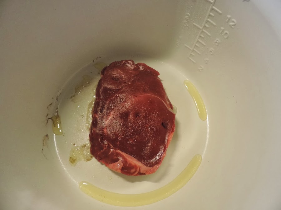 Poner unas gotas de aceite en la cubeta de la olla para hacer el solomillo.Programamos la olla: