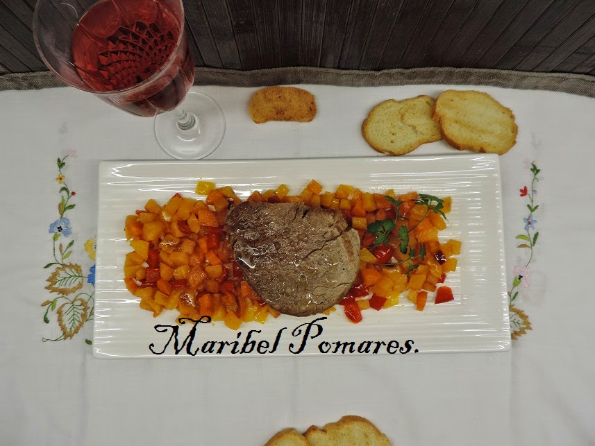 Ya está el solomillo. Está echo por fuera y por dentro está un poco rojo pero no sale sangre, si nos gusta menos echo le pondremos menos tiempo.