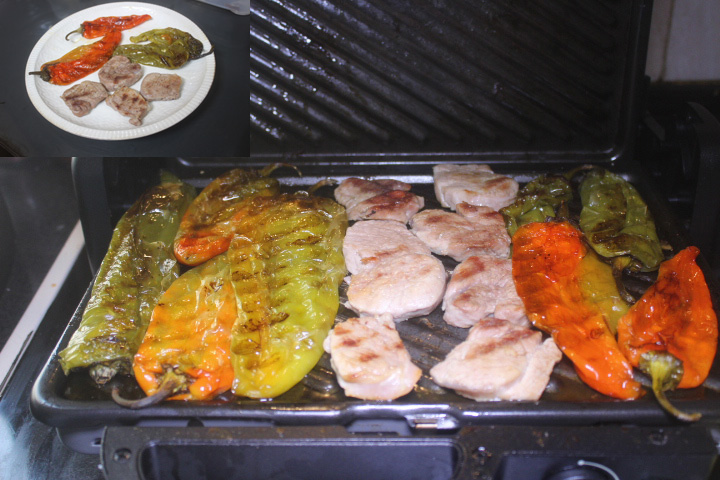 Como tenía un solomillo congelado, se me ocurrió consumirlo, acompañando los pimientos, como además no tenía muchas ganas de trabajar, opte por utilizar el grill doble y cocinar el solomillo y los pimientos juntos, sin manchar ningún cacharro más que si mancho muchos cacharros, la mujer me pega con su escoba imaginaria.