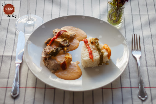 Y si como a mí no os convence San Valentín, seguro que sí os apetecerá una buena cenita con la pareja o con quien os parezca y para eso este plato queda siempre por todo lo alto. Os confieso, ya que hoy andamos de confesiones, que es uno de mis platos estrella. No recuerdo muy bien donde encontré la receta, pero está de verdad buenísimo, la combinación de la nata (crema de leche) con los tres pimientos y el resto de los ingredientes propicia un sabor suave que llena el paladar. Y en casa, si no lo hago, me lo piden. Es entretenido pero de verdad que el resultado merece la pena.