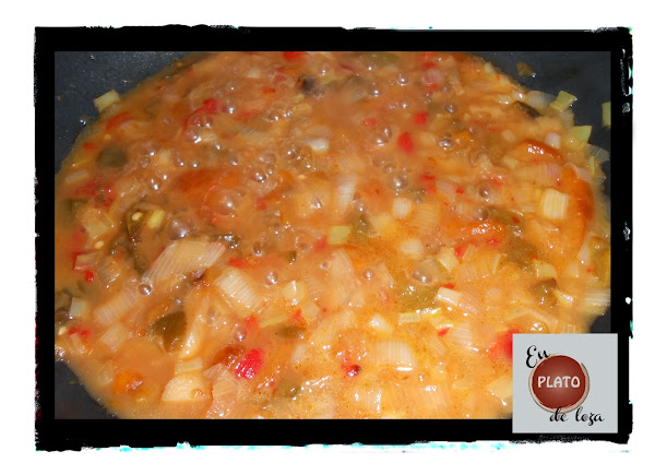 Calentamos una cucharada de mantequilla y sofreímos los pimientos picados junto a la cebolla fresca picada también muy finita. En unos minutos agregamos el vino y dejamos cocer hasta que reduzca a la mitad. Regaremos con el caldo de carne y dejamos reducir nuevamente.