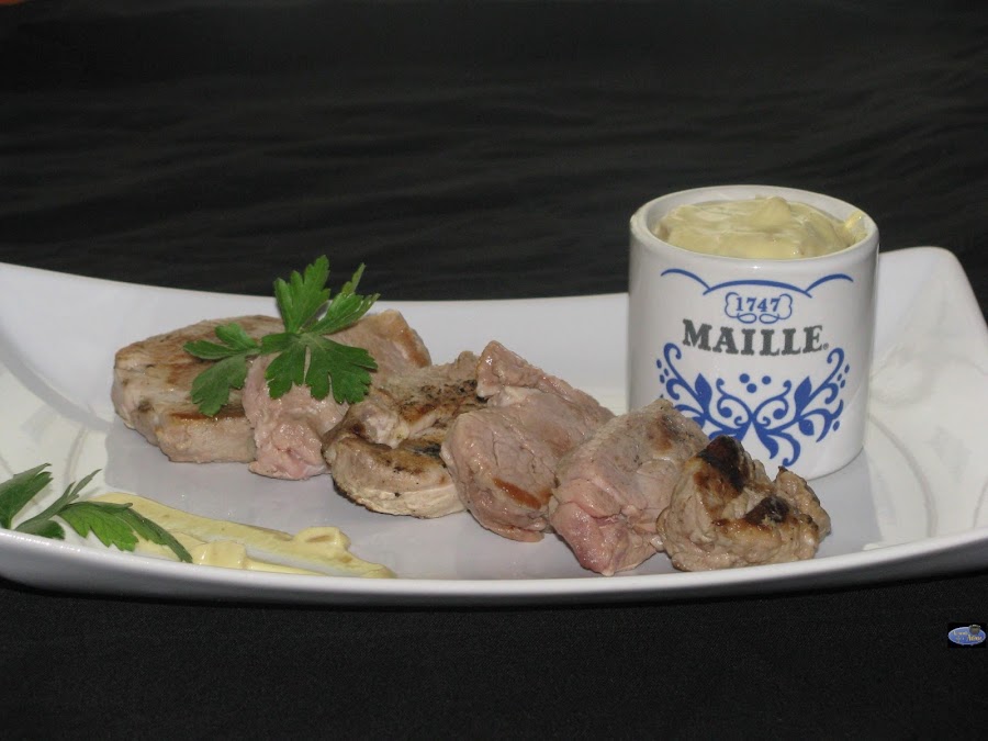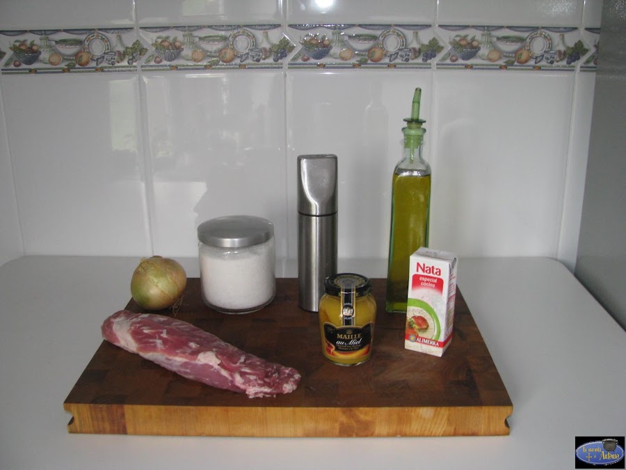 Una de las cosa que más me sorprendió de los productos de Maille fue sin duda su mostaza con miel.Muchos platos,sobre todo carnes, se pueden acompañar con esta salsa compuesta de mostaza por un lado y miel por el otro.Pero en este caso Maille nos lo ofrece ya todo listo y mezclado y os puedo asegurar que el resultado es fantástico.Jo y al que le guste la mostaza,como a mi,está para comérsela a cucharadas...mmmm.Así que dicho esto el otro día ,como podéis ver, hice solomillo y una salsita estupenda para que no estuviera solo(ni él ni la barra de pan que tenía preparada...jeje).Vamos allá...