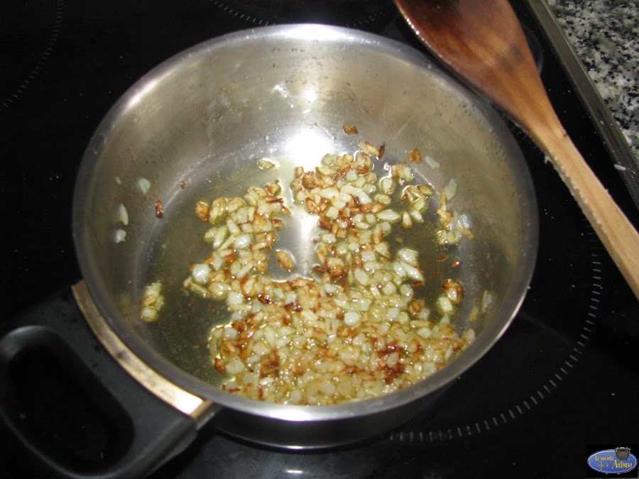 Pelamos y picamos la cebolla y la ponemos a pochar con un poco de aceite de oliva.