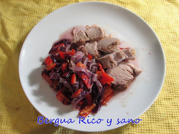 * El color morado de mi plato viene de la cebolla morada y de la col lombarda en conserva que añadí.