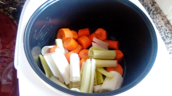 Para tod@s los que no tenéis robot de cocina, tenéis que cocinar los ingredientes hasta que estén blandos y tiernos.
