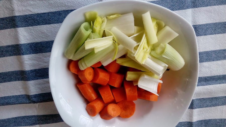 1 puerro cortado en trozos y muy bien lavado, pues suele tener bastante tierra.