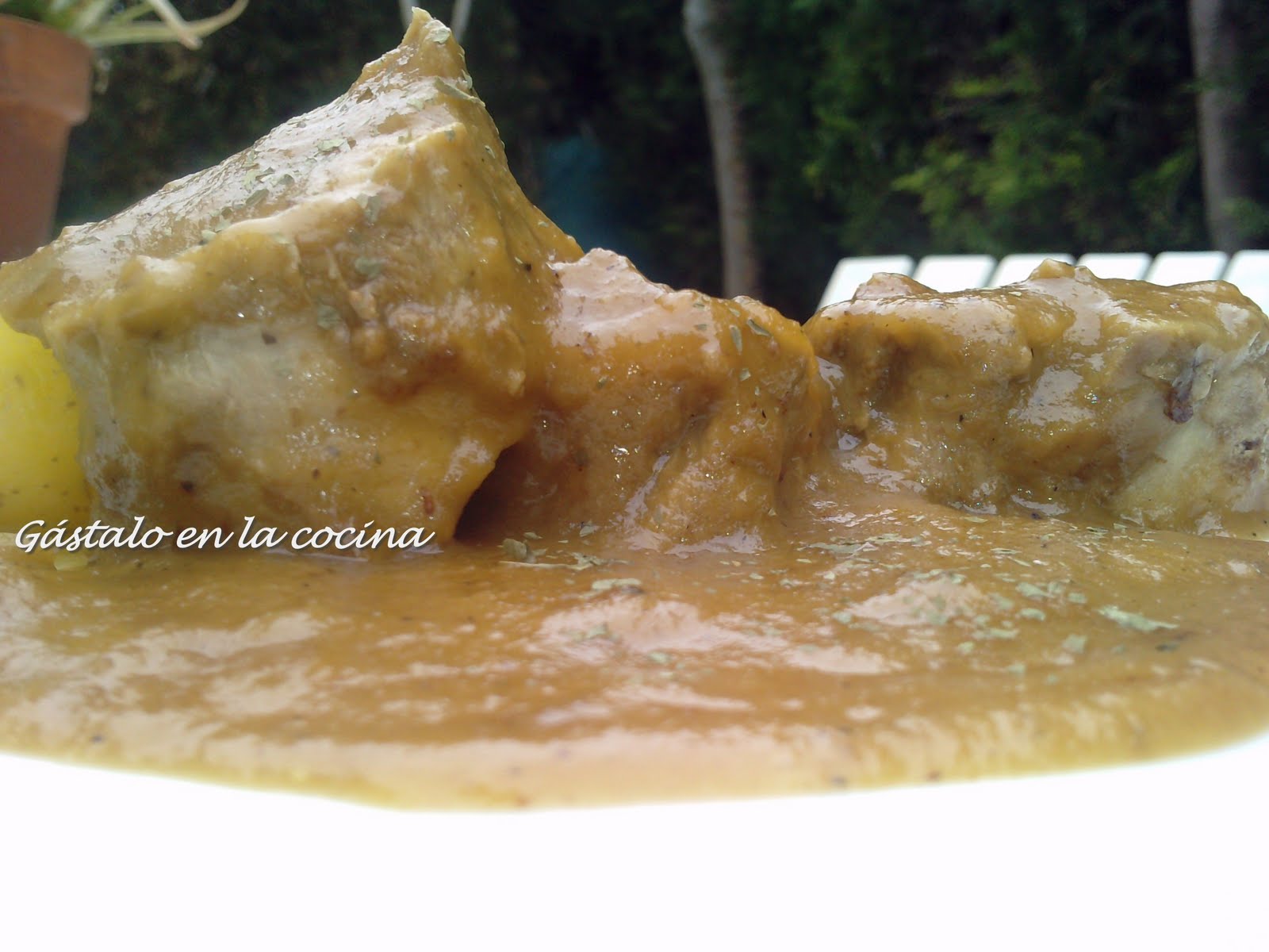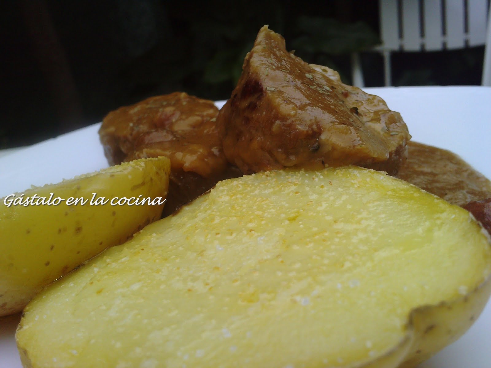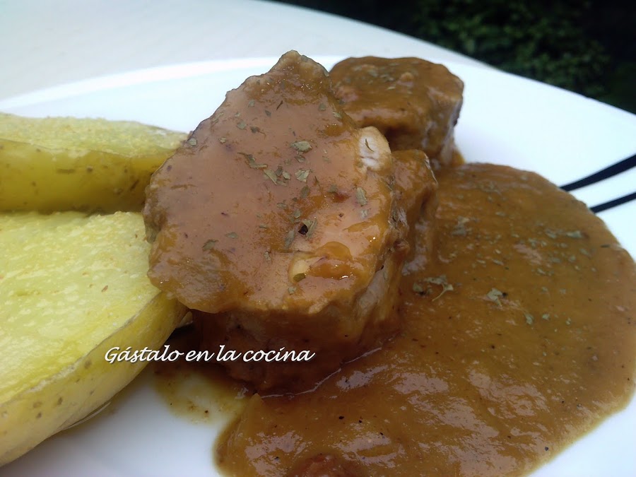 Nota: yo he añadido como guarnición unas patatas asadas al microondas con un poco de aceite, ajo y sal.