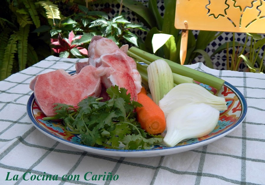 4 cucharones de caldo de carne o de pollo. Podéis mira en el blog el enlace del caldo de pollo y sustituimos el pollo por huesos blancos de ternera y el perejil por cilantro.