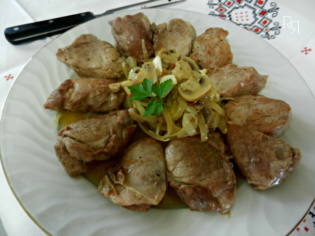 Ponemos una sartén al fuego con un poco de aceite y sellamos los medallones por las dos caras junto con los ajos enteros (podemos pasar por harina la carne y luego dorarla; así espesa algo mas la salsa pero yo no lo he hecho). Lo sacamos todo a un plato y reservamos.
