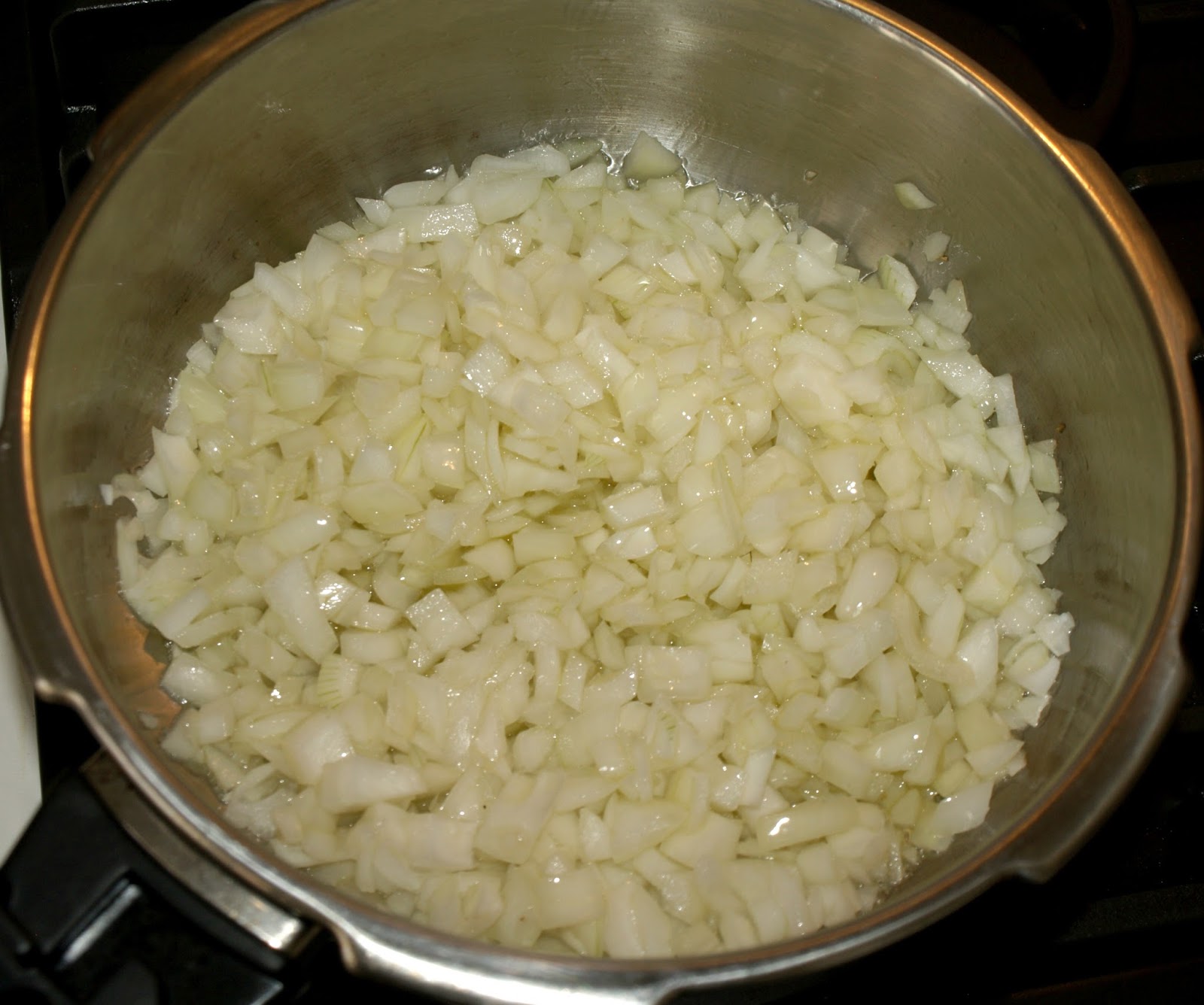 - A continuación, ponemos en la olla un poco de aceite y pochamos la cebolla previamente picada.