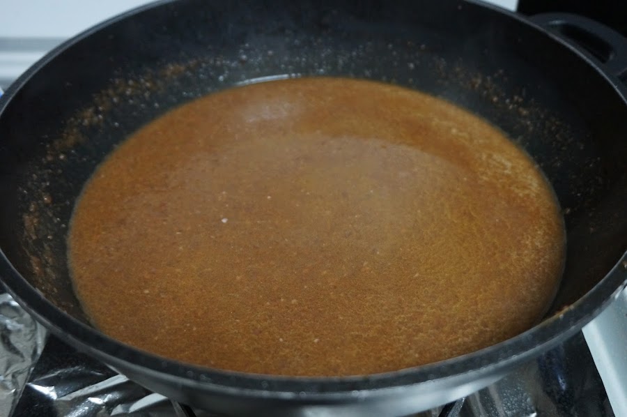Ponemos las 2 cucharadas de soja y un poco de caldo o agua.