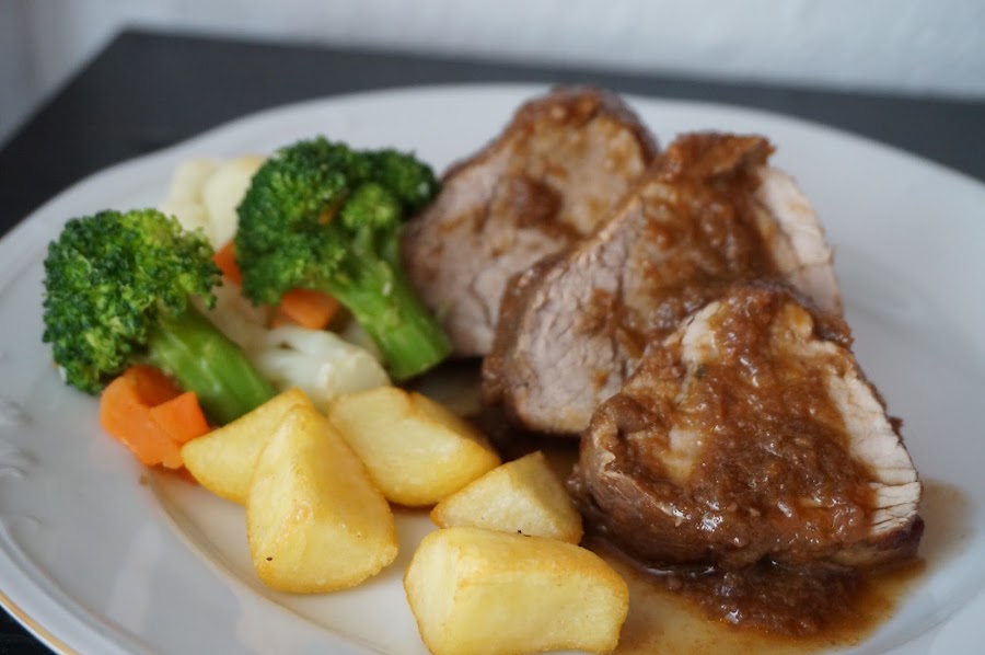 Hoy os propongo una receta muy sencilla pero muy buena para preparar en estas fiestas de Navidad, un solomillo de cerdo al vino tinto.