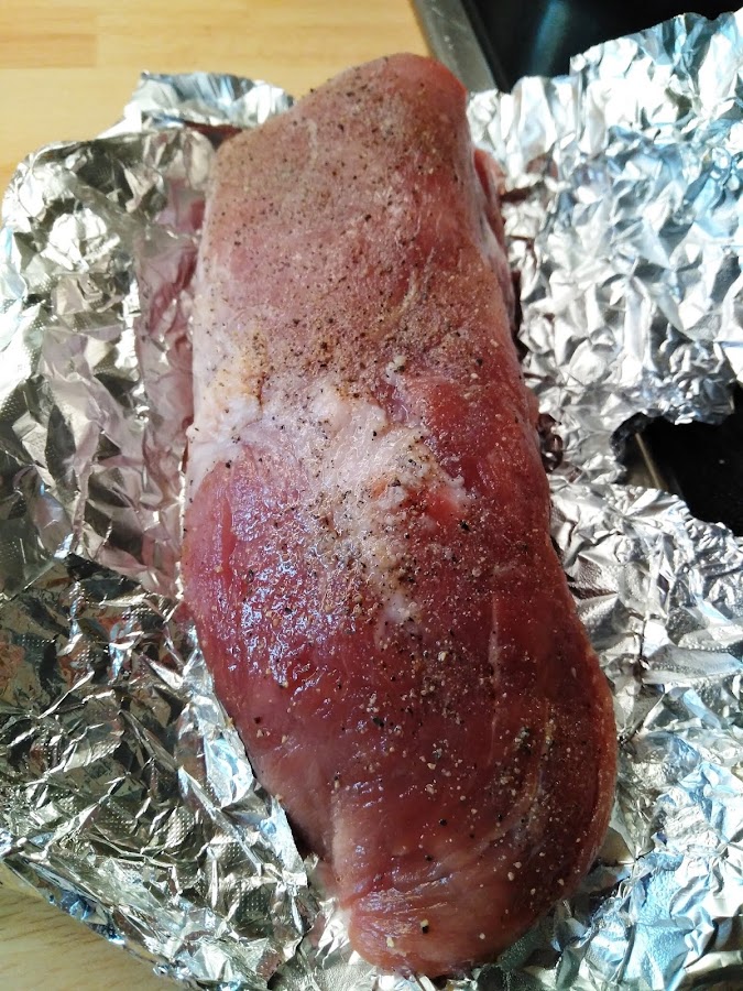 Pincelamos el solomillo de cerdo con el aceite y lo ponemos en una sartén o al grill para que se dore unos 5 minutos por cada lado, o hasta que esté hecho por dentro dependiendo de cómo nos guste de hecho. Lo quitamos del fuego y lo dejamos reposar durante 5 minutos. Cortamos en rodajas un poco gruesas.