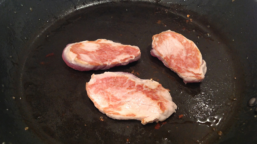 En la misma sartén usada se hacen los filetes de solomillo vuelta y vuelta.