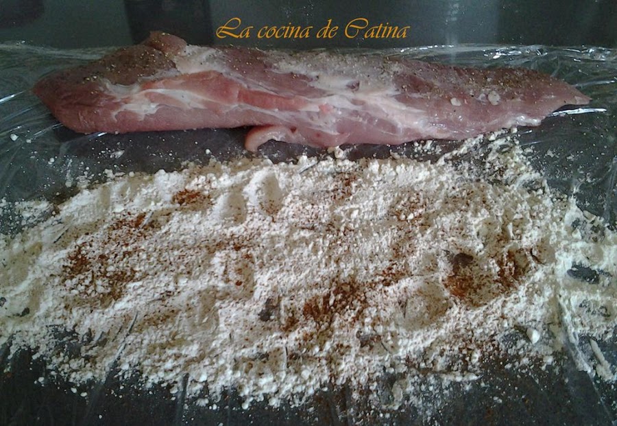 Salpimentar los solomillos y pasarlos por harina y pimentón dulce.