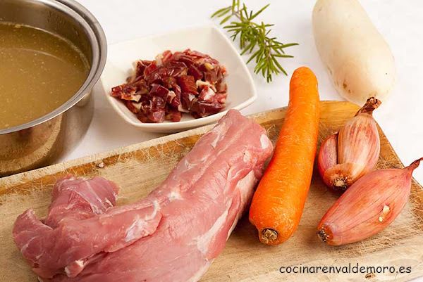 Vamos a preparar el solomillo de cerdo con jamón. Nosotros explicamos la receta para consumir en el momento, pero si queréis preparar este plato con anticipación, hay dos posibilidades: una, preparar la salsa previamente y hacer el solomillo a la plancha justo antes de consumirlo, y otra guardar el solomillo mezclado con la salsa, para evitar que la carne se reseque.