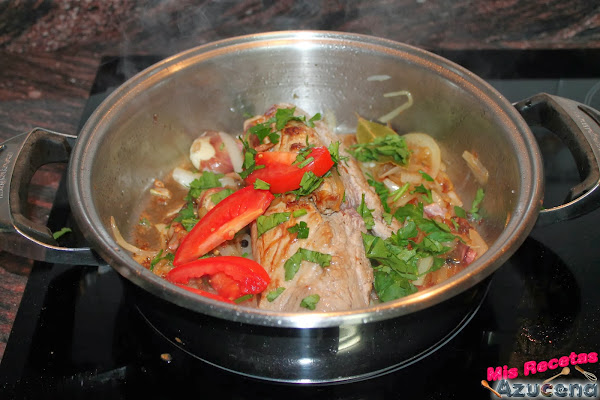 Removemos todo, añadimos el vino y lo dejaremos que reduzca durante 7 minutos.