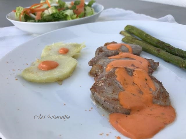 Es esta una receta muy sencilla, pues solo lleva una salsa y el solomillo a la plancha. Como acompañamiento puedes ponerle unos espárragos a la plancha y patatas cocidas, o lo que mas te guste. Es esta una receta con la que participo en el Reto "Tus Recetas" y esta receta concretamente es del Blog de cocina "Pan,uvas y queso".