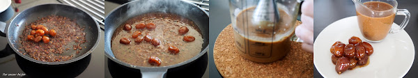 Retirar del fuego y reservar los kumquats enteros. Verter el resto de la salsa en el vaso de la batidora y triturar hasta obtener una salsa homogénea (si la queremos más fina podemos pasarla por un colador fino).
