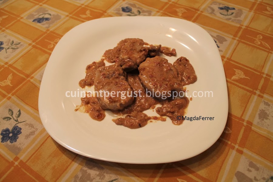 Freír los medallones en un poco de aceite hasta que estén dorados. Ponerlos en la sartén en que se ha reservado la salsa para que se impregnen. Calentar si es necesario. Servir.
