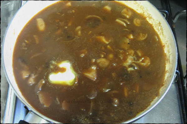 Cuando la salsa haya espesado, agregarle una nuez de mantequilla y seguir removiendo.